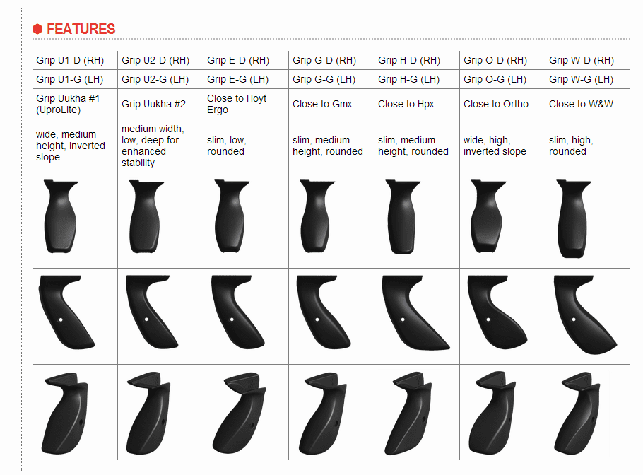 Uukha offer a comprehensive range of replacement grips. Made of the same material as the standard U1 grip usually supplied.